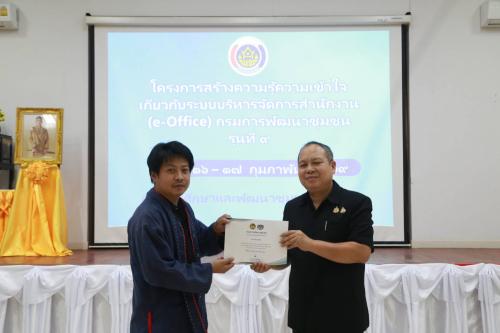 วันที่ 16 ก.พ.2569 นางจิตติภรณื บุตราช พัฒนาการอำเภอพังโคน ให้ นายนคร สมัย นักวิชาการพัฒนาชุมชนชำนาญการ เข้าร่วมโครงการสร้างความรู้ ความเข้าใจเกี่ยวกับ การบริหารจัดการสำนักงาน ( e-office )กรมการพัฒนาชุมชน เพื่อเพิ่มประสิทธิภาพในการใช้งานระบบ e-office ให้คุ้มค่า และให้มีความรวดเร็วในการรับส่งหนังสือ พร้อมกับการจัดเก็บหนังสือให้เป็นระบบตามโปรแกรม e-office ณ ศูนย์ศึกษาและพัฒนาชุมชนอุดรธานี