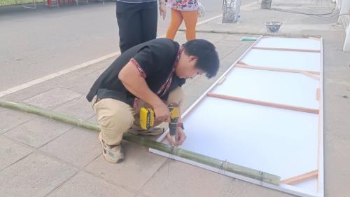 วันที่ 24 กุมพาพันธ์ 2569 นางสาวจิตติภรณ์ บุตราช พัฒนาการอำเภอพังโคน พร้อมด้วยเจ้าหน้าที่พัฒนาชุมชนอำเภอ ขับเคลื่อนประเพณีอำเภอ งานช้างพังโคน โดยจัดทำป้ายประชาสัมพันธ์ของดีอำเภอพังโคน และเตรียมสถานที่สำหรับจำหน่ายผลิตภัณฑ์ OTOP เพื่อประชาสัมพันธ์ให้คนมาร่วมงานรับรู้ถึงผลิตภัณฑ์ของอำเภอพังโคน และยังเป็นการเพิ่มรายได้ให้กับกลุ่มผู้ผลิตผู้ประกอบการ OTOP พังโคน และอำเภอข้างเคียงที่เข้ามาร่วมงาน ณ ที่ว่าการอำเภอพังโคน