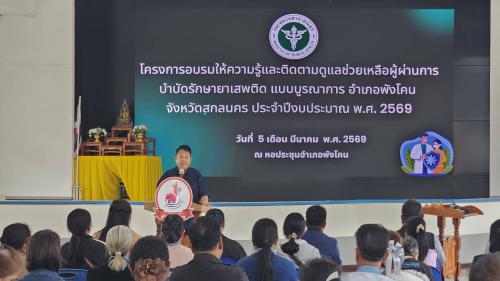 สำนักงานพัฒนาชุมชนอำเภอพังโคน นำโดย นางสาวจิตติภรณ์ บุตราช พัฒนาการอำเภอพังโคน เข้าร่วมพิธีเปิดและสนับสนุนดำเนินงาน “โครงการให้ความรู้และติดตามดูแลช่วยเหลือผู้ผ่านการบำบัดรักษายาเสพติดแบบบูรณาการ อำเภอพังโคน จังหวัดสกลนคร” โดยได้รับเกียรติจาก นายวิชาญ ดาทุมมา นายอำเภอพังโคน เป็นประธานในพิธีเปิดโครงการ พร้อมทั้งกล่าวพบปะให้กำลังใจแก่ผู้เข้าร่วมโครงการบูรณาการความร่วมมือ เพื่อคุณภาพชีวิตที่ดีขึ้น การจัดโครงการในครั้งนี้มีวัตถุประสงค์หลักเพื่อเสริมสร้างความรู้ความเข้าใจ และวางระบบการติดตามดูแลช่วยเหลือผู้ที่ผ่านกระบวนการบำบัดรักษายาเสพติดอย่างใกล้ชิด โดยอาศัยความร่วมมือจากภาคีเครือข่ายทุกภาคส่วนในพื้นที่ เพื่อป้องกันการกลับไปกระทำผิดซ้ำและส่งเสริมให้สามารถกลับมาใช้ชีวิตตามปกติสุขได้