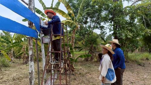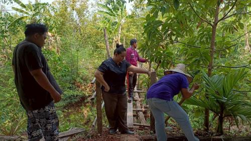 นางสาวจิตติภรณ์ บุตราช พัฒนาการอำเภอพังโคน นำ เจ้าหน้าที่พัฒนาชุมชน ผู้นำ อช.ตำบลต้นผึ้ง และตัวแทนเครือข่ายโคกหนองนา ลงพื้นที่ศูนย์ผู้นำจิตอาสาพัฒนาชุมชน อำเภอพังโคน จังหวัดสกลนคร เพื่อปรับปรุงภูมิทัศน์ การพัฒนาศูนย์แห่งนี้ ไม่ใช่เพียงการปรับปรุงพื้นที่ให้ดูดีเท่านั้น แต่คือการสร้างพื้นที่แห่งความศรัทธาที่แสดงให้เห็นถึงพลังของจิตอาสาและความร่วมมือของคนในชุมชน เพื่อให้เป็นแหล่งเรียนรู้หลักปรัชญาของเศรษฐกิจพอเพียงที่จับต้องได้จริง
