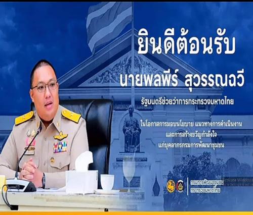 วันที่ 20 เมษายน 2569 เวลา 15.00 น. ณ ห้องประชุม 3003 ชั้น 3 กรมการพัฒนาชุมชน นายพลพีร์ สุวรรณฉวี รัฐมนตรีช่วยว่าการกระทรวงมหาดไทย เป็นประธานในการมอบนโยบายสำคัญในการขับเคลื่อนงานพัฒนาชุมชนของกรมการพัฒนาชุมชน กระทรวงมหาดไทย พร้อมด้วยคณะทำงานรัฐมนตรีว่าการกระทรวงมหาดไทย เพื่อวางรากฐานเศรษฐกิจฐานรากให้มีความมั่นคงและสร้างชุมชนที่เข้มแข็งอย่างยั่งยืน โดยเน้นย้ำการทำงานที่ต้องเห็นผลสัมฤทธิ์เป็นรูปธรรมและเกิดประโยชน์สูงสุดต่อประชาชน ในโอกาสนี้มีนายสยาม ศิริมงคล คณะผู้บริหารกรมการพัฒนาชุมชน และเจ้าหน้าที่กรมการพัฒนาชุมชน ให้การต้อนรับและรับมอบนโยบายอย่างพร้อมเพรียง